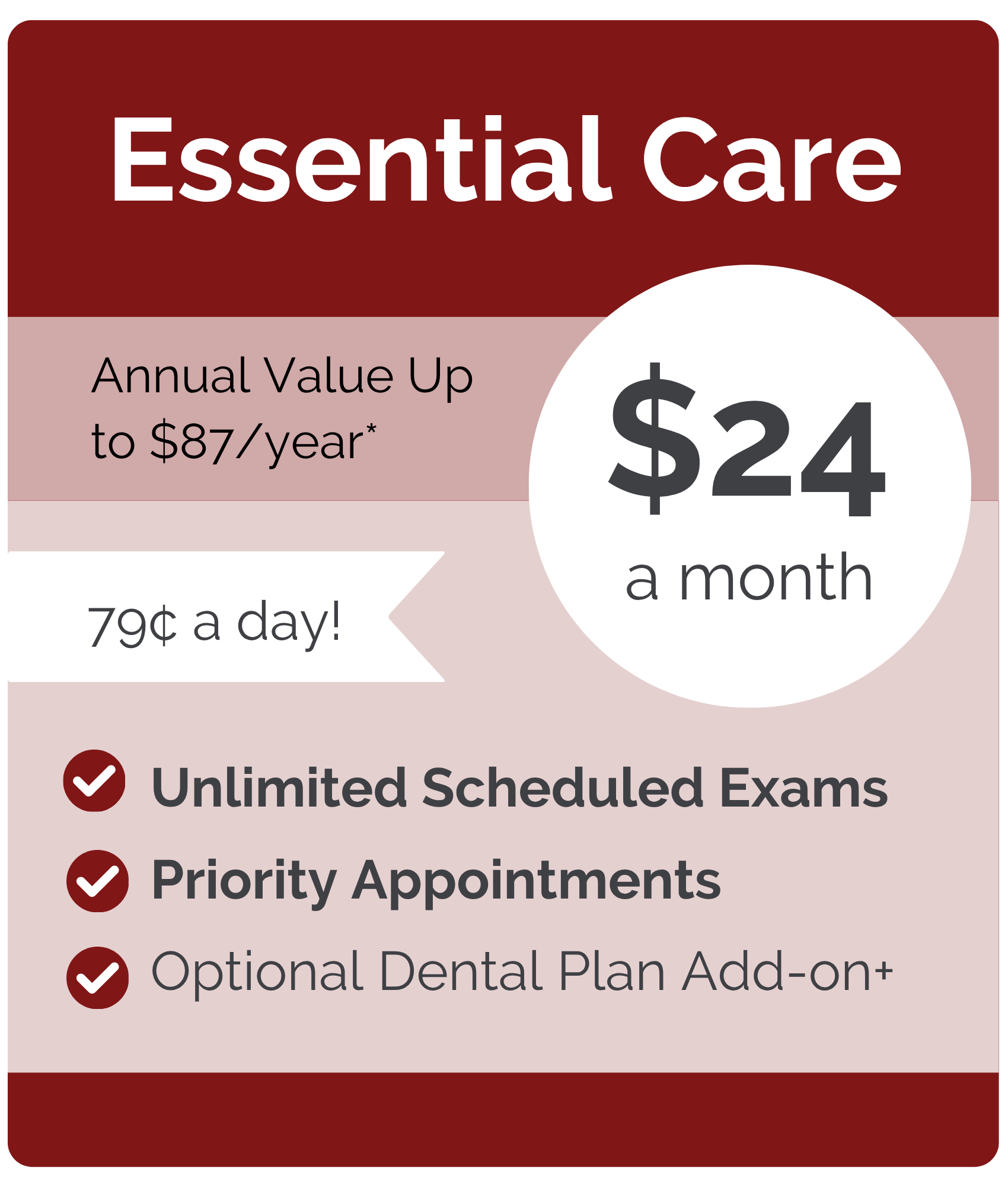 With unlimited exams and priority appointments, you can come in anytime.